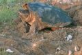 22 June 2003 (David Villeneuve) You don't have to go to Petrie Island to find snappers laying eggs this week. I was walking on the south side of road 174, under the power lines that are built on the former railway tracks, where Cardinal Creeks passes underneath. I found the mother of all snappers right on the "trail". Cardinal Creek was at least 100 feet vertically down from there. |