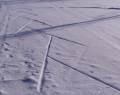 tracks. It almost looks like the animal was laying down sticks on the